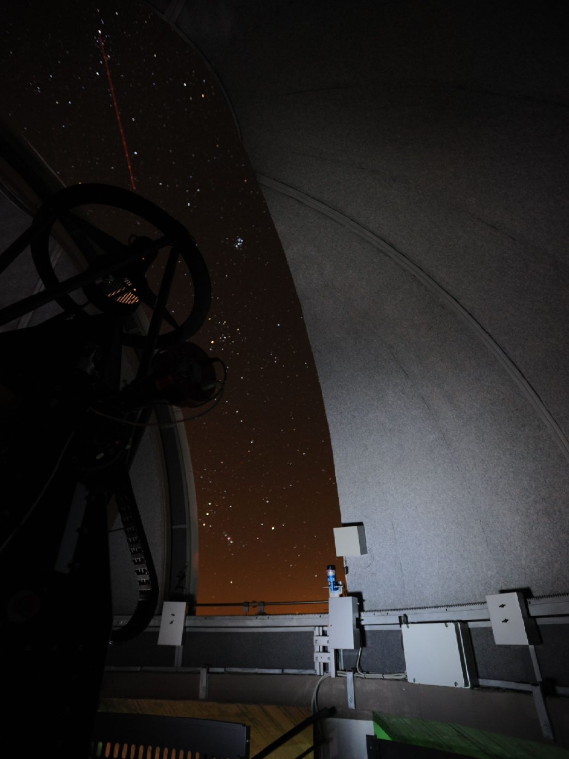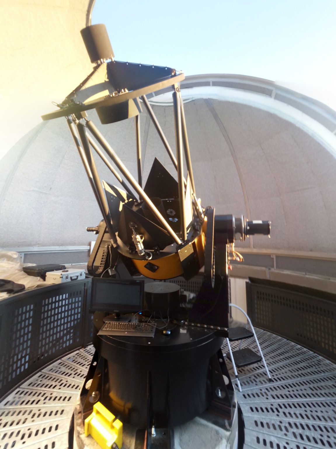 L’osservatorio ospita un telescopio Cassegrain-Nasmyth T0800-01 da 80 cm di Astelco con montatura alt-azimutale dotata di CCD raffreddate ad aria (sono disponibili 3 CCD: Sbig STL 11000M ATIK 11000M e Sbig STL 11000M) e una ruota portafiltri standard UBVRI Johnson. Sono disponibili due spettrografi: un Echelle con collegamento in fibra ottica e un LHIRES-III. Il puntamento e la posizione dello specchio secondario sono attualmente controllati tramite il software proprietario AstelOS, mentre l’acquisizione dei dati delle immagini è gestita tramite un software di controllo basato sul web che fornisce una gestione semplice e integrata di tutti i componenti. La marca temporale è ottenuta tramite un’antenna GPS. Il telescopio può muoversi a una velocità di 20°/s e un’accelerazione di 20°/s^2 per puntare un campo. Con la configurazione attuale, si misuriamo una plate scale di 0,29″/px, una precisione di puntamento inferiore a 10″ rms e una precisione di tracciamento inferiore a 1″.